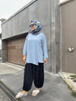 Bileği Büzgülü Asimetrik Kesim Uzun Kollu Bluz