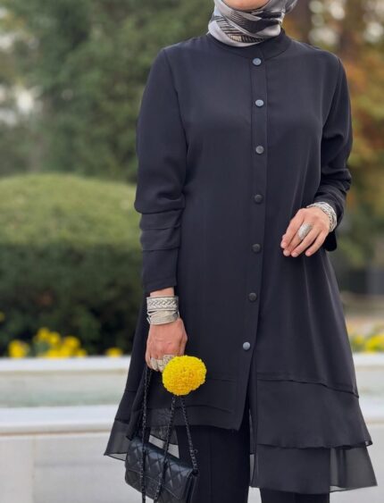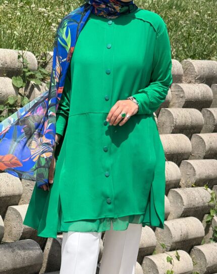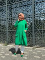 Önden Fermuarlı Cep Detaylı Tesettür Tunik