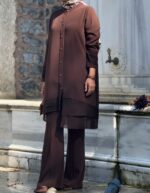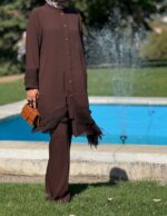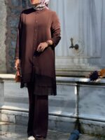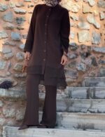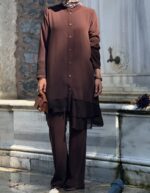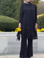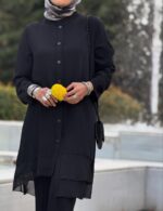 Önden Düğmeli Etekleri Kat Kat Şifon Tesettür Tunik