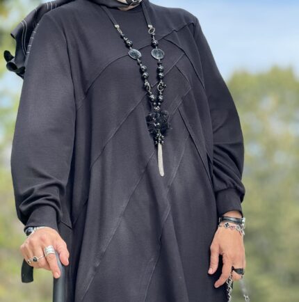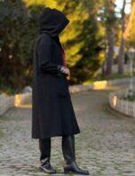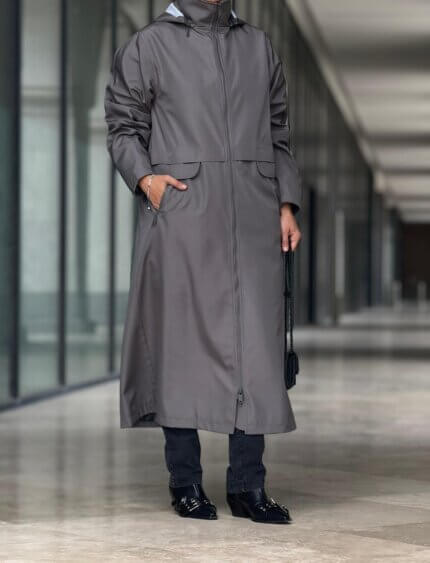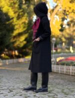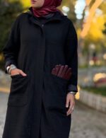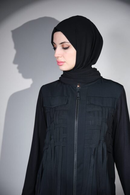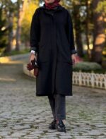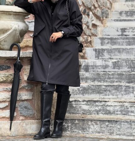 Siyah Kapüşonlu Fermuarlı Cep Detaylı Tesettür Kap