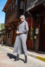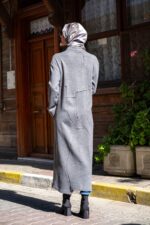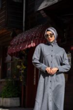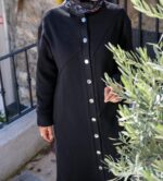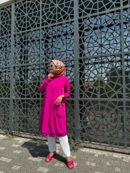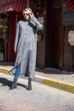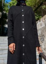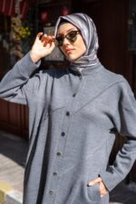 Önden Düğmeli Asimetrik Dikiş Detaylı Tesettür Tunik