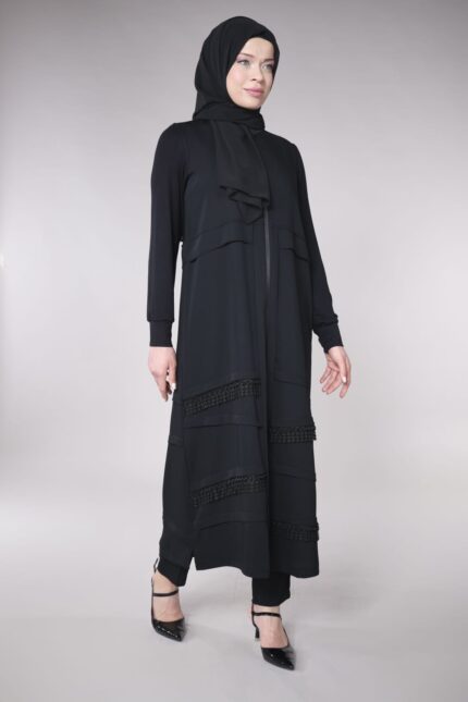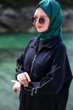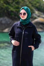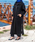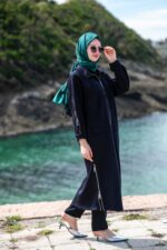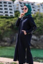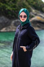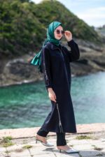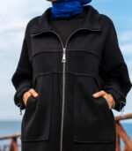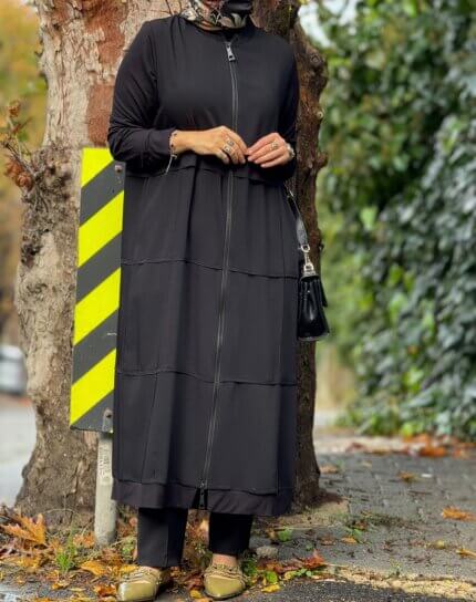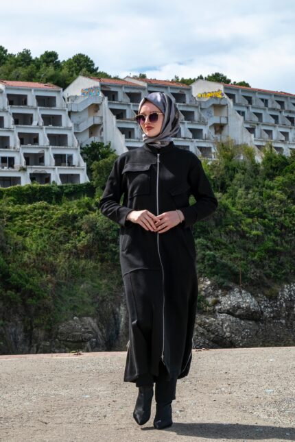 Önden Düğmeli Asimetrik Dikiş Detaylı Tesettür Tunik