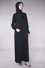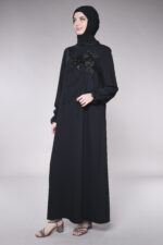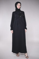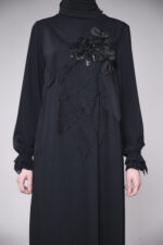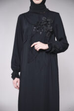 Siyah Çiçek Nakışlı Payet İşlemeli Uzun Elbise