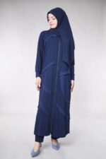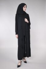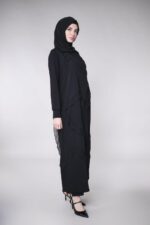 Fermuarlı Kat Kat Şifon Detaylı Ferace