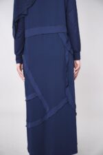 Fermuarlı Asimetrik Şifon Şerit Detaylı Uzun Pardesü