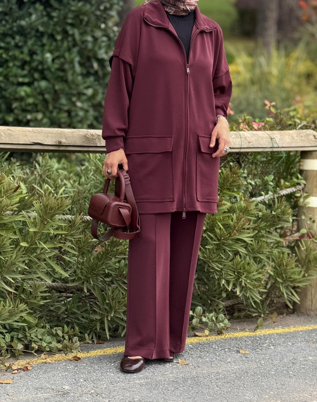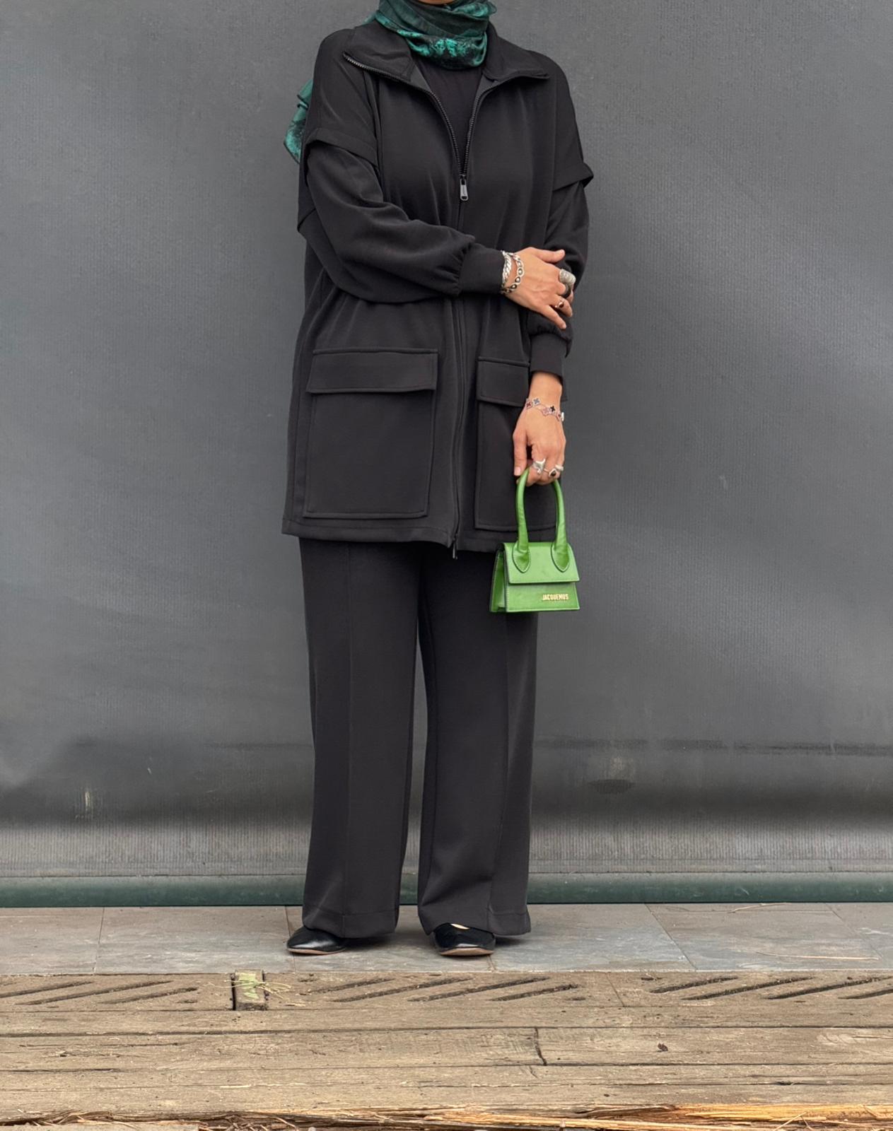 Ana Sayfa Takım Pantolon Takım Fermuarlı Büyük Cep Detaylı Pantolonlu Takım