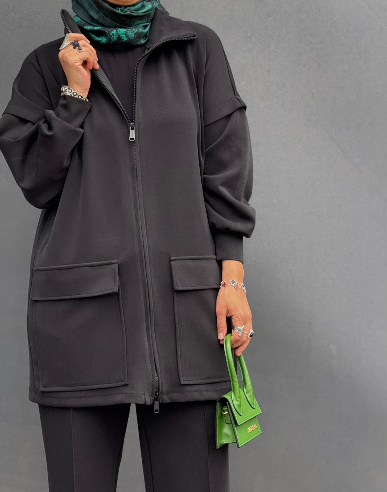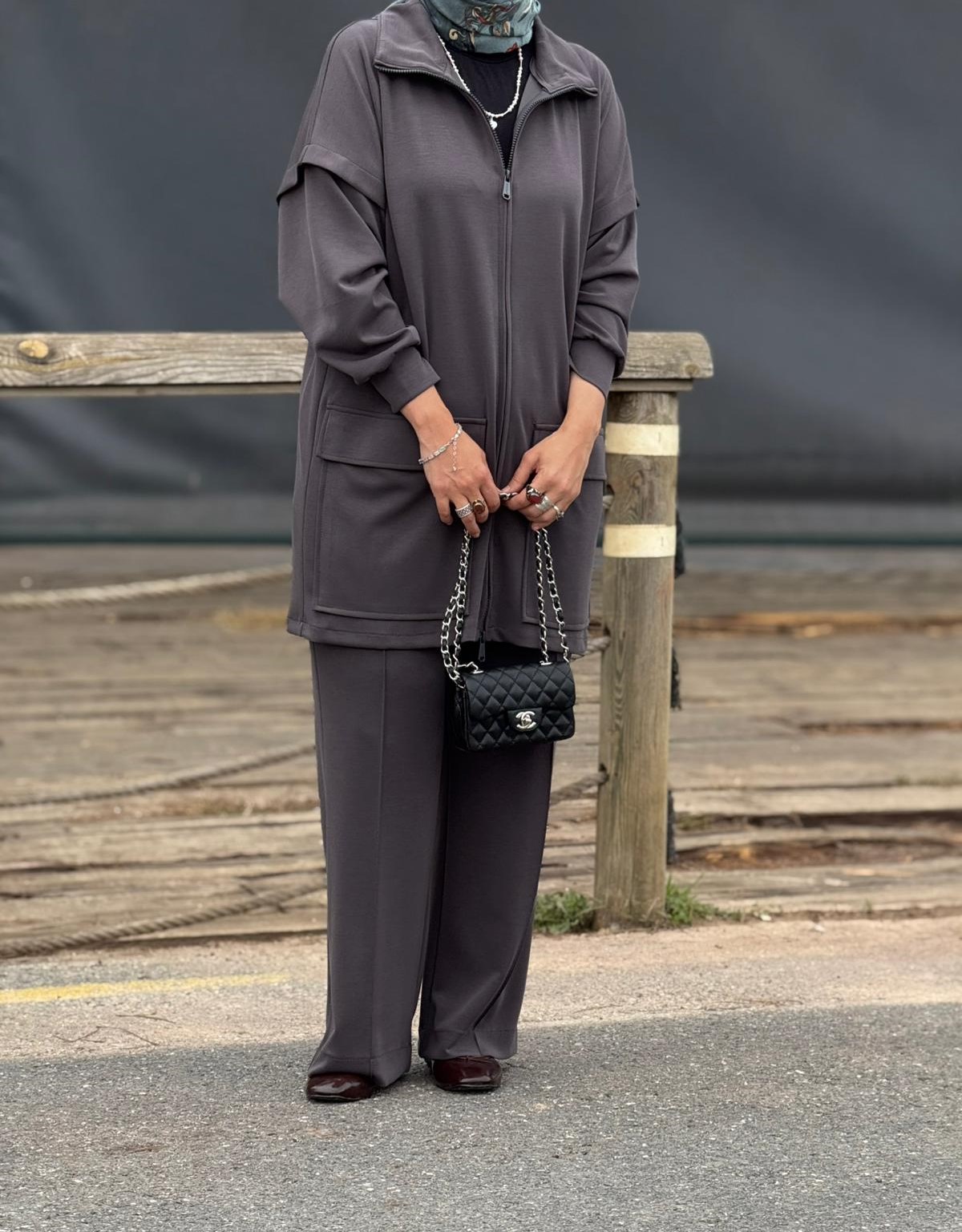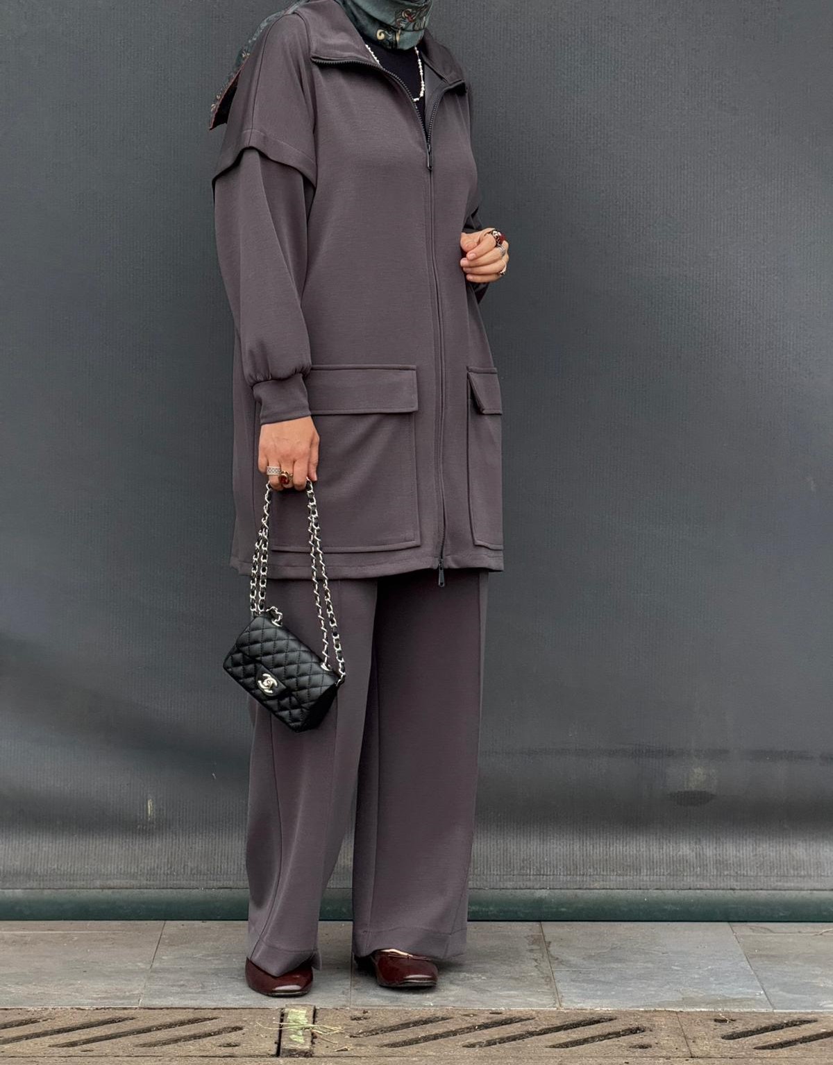 Fermuarlı Büyük Cep Detaylı Pantolonlu Takım