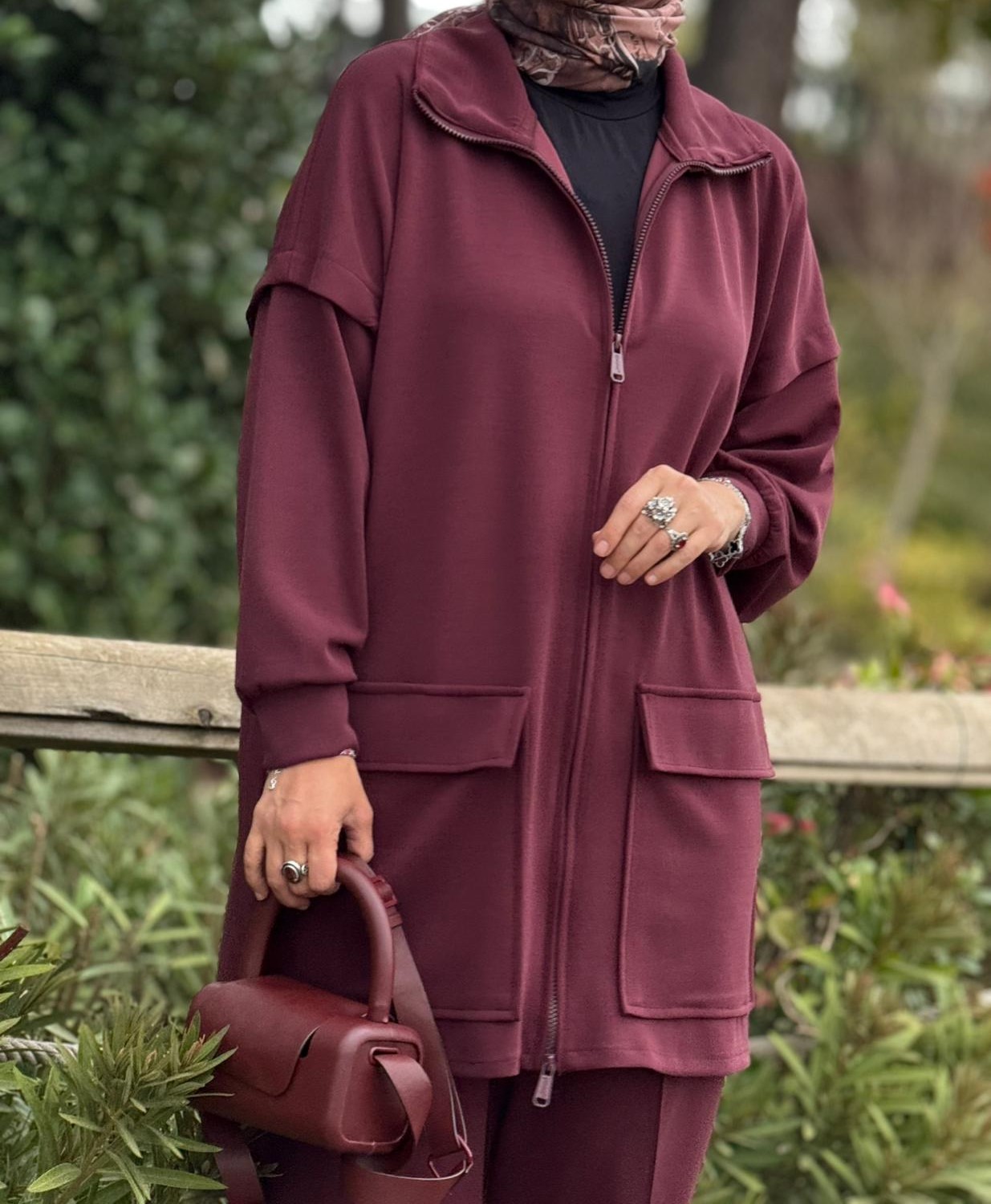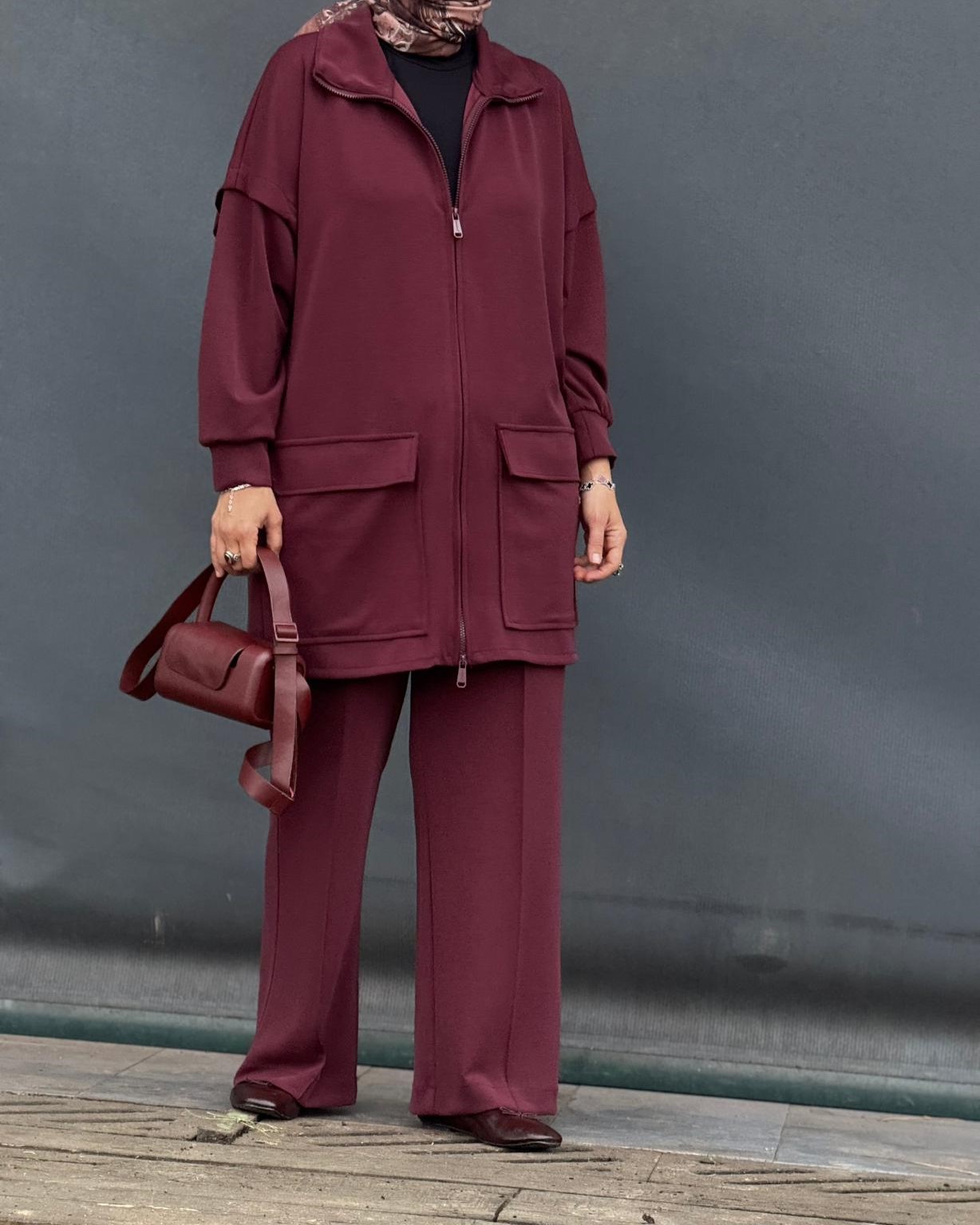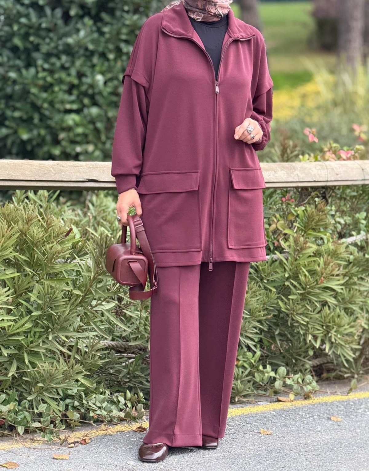 Fermuarlı Büyük Cep Detaylı Pantolonlu Takım