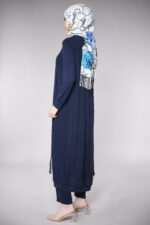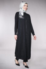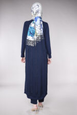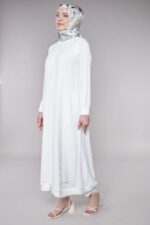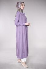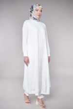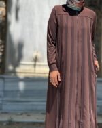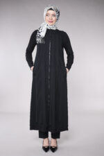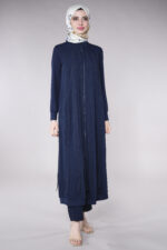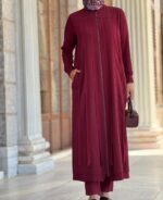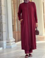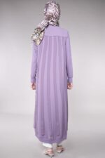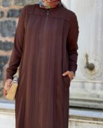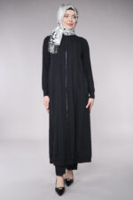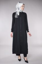 Fermuarlı Şifon Nervür Detaylı Uzun Pardesü