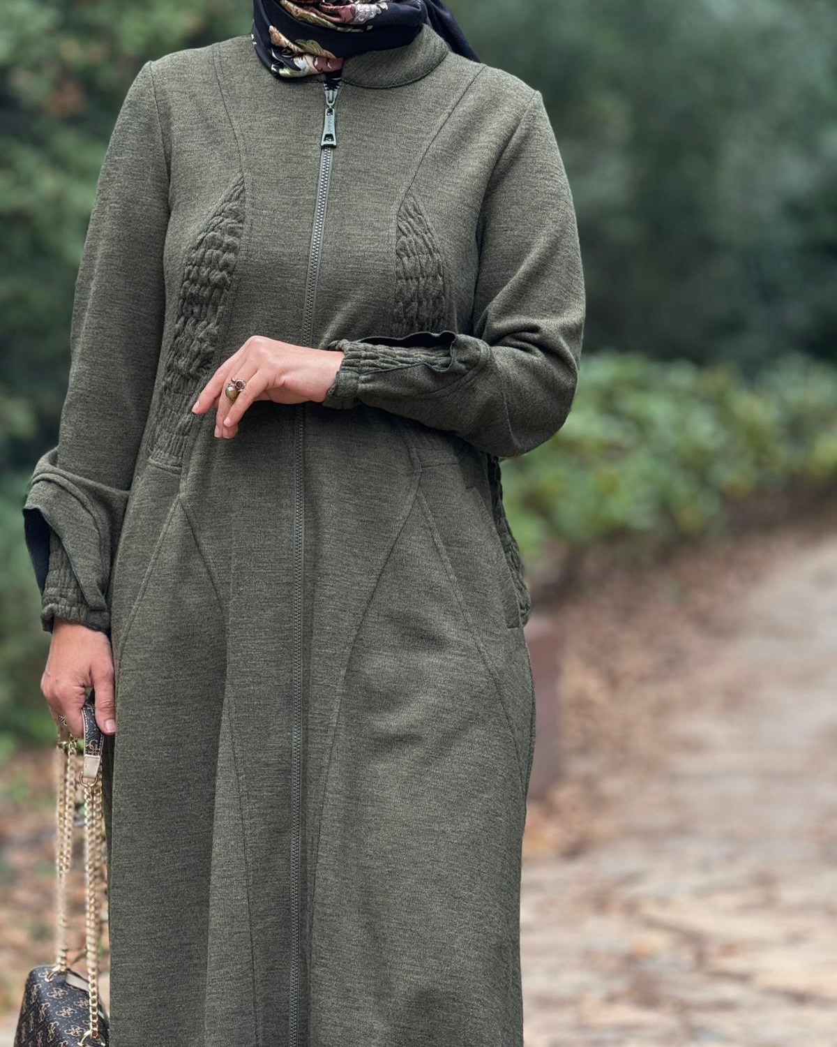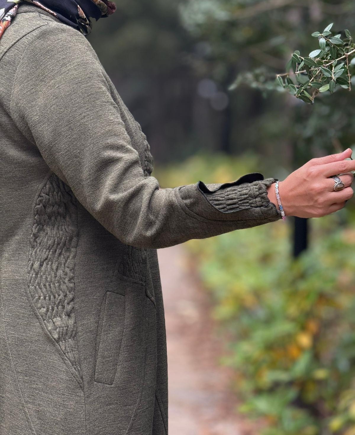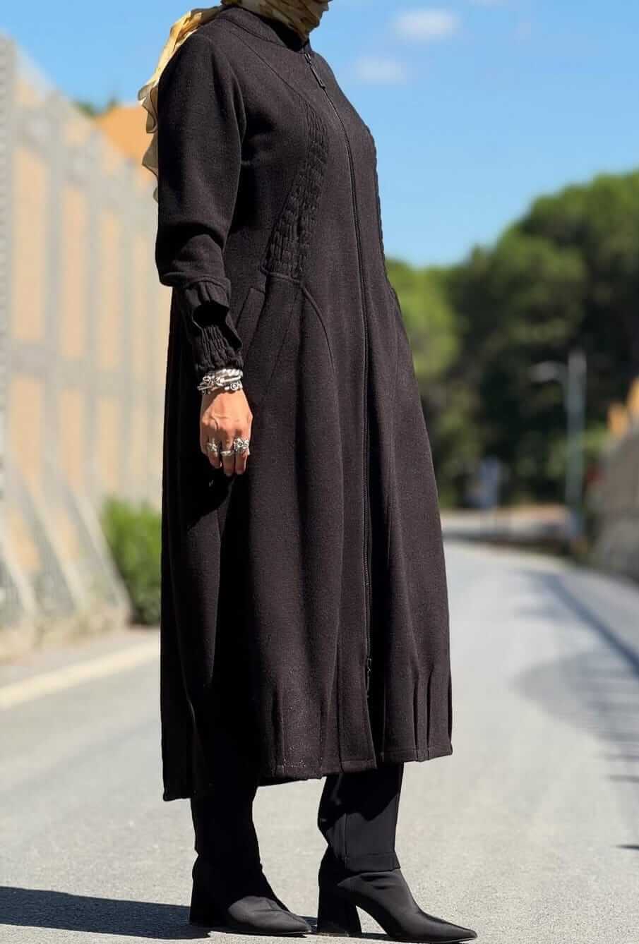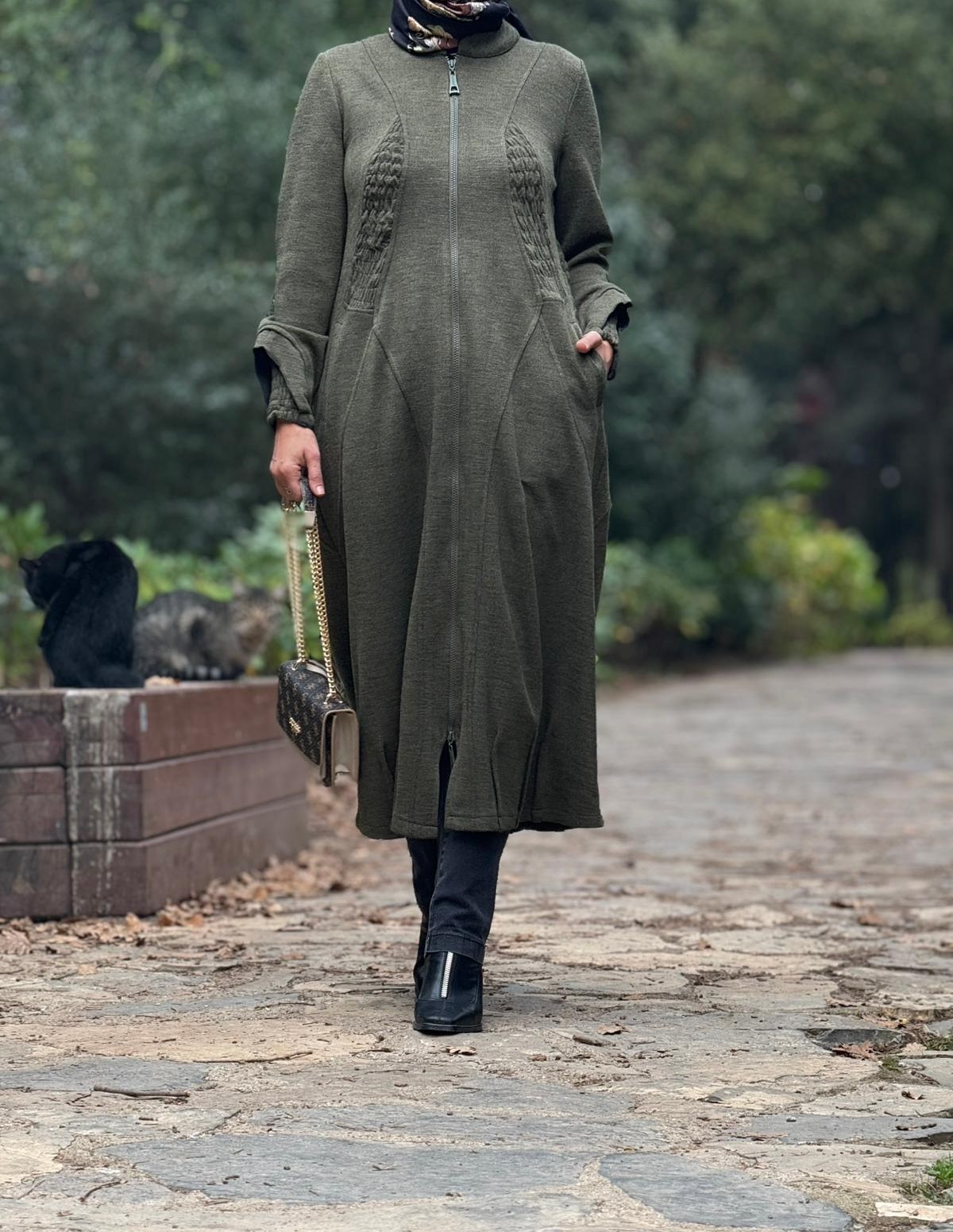 Hakim Yaka Büzgü Detaylı Fermuarlı Pardesü