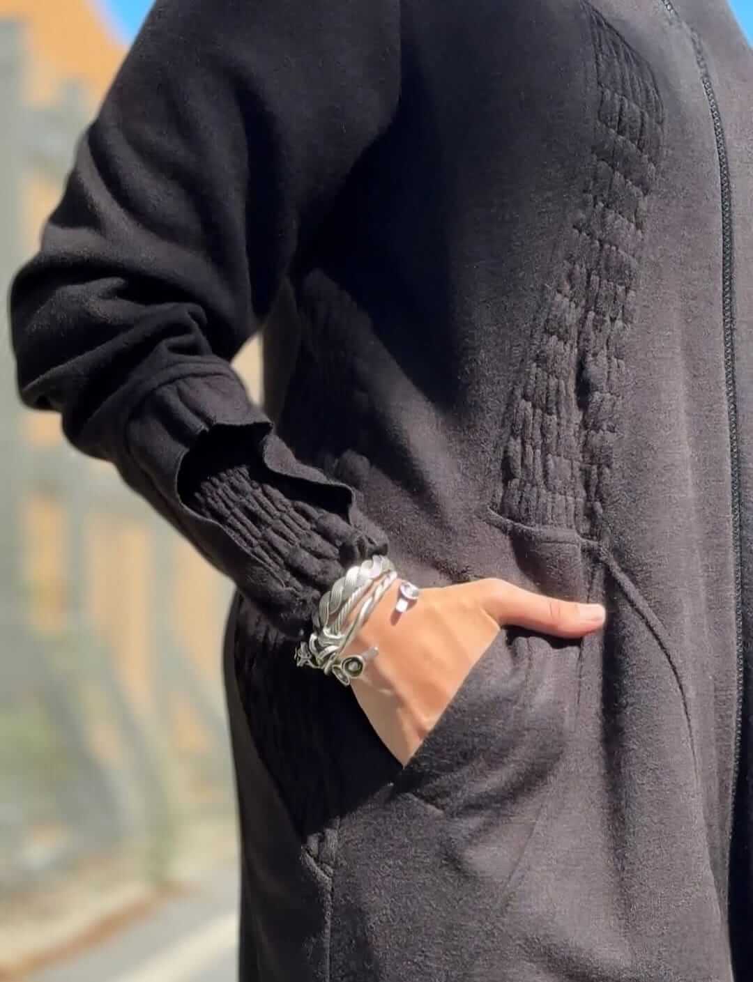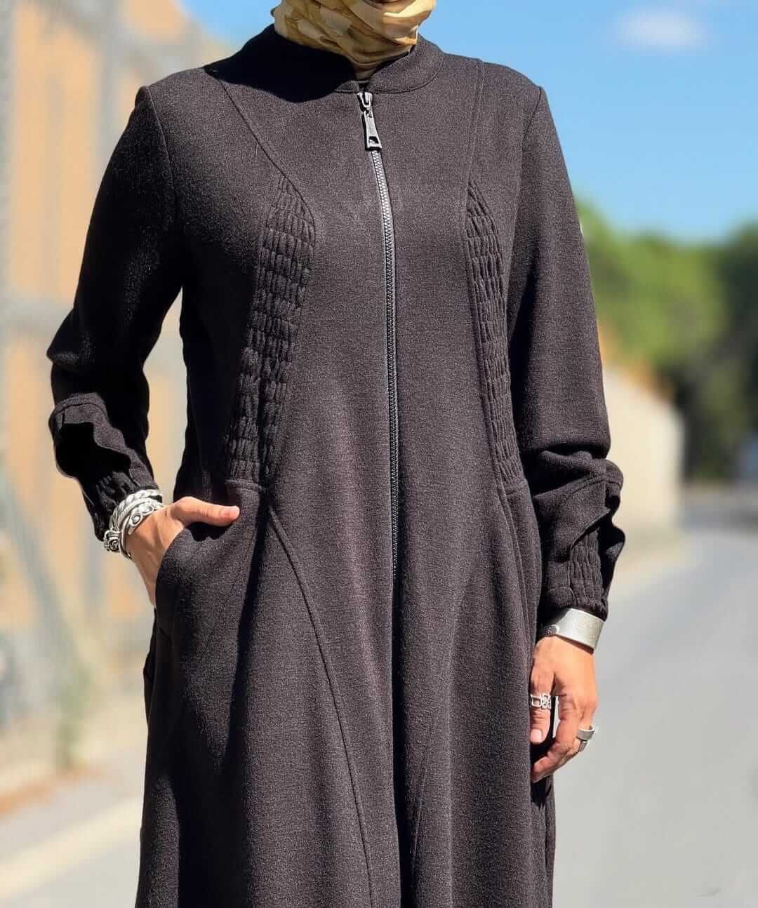 Fermuarlı Patchwork Deri Detaylı Tesettür Tunik