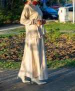 Kat Kat Şifon Detaylı Uzun Krep Elbise