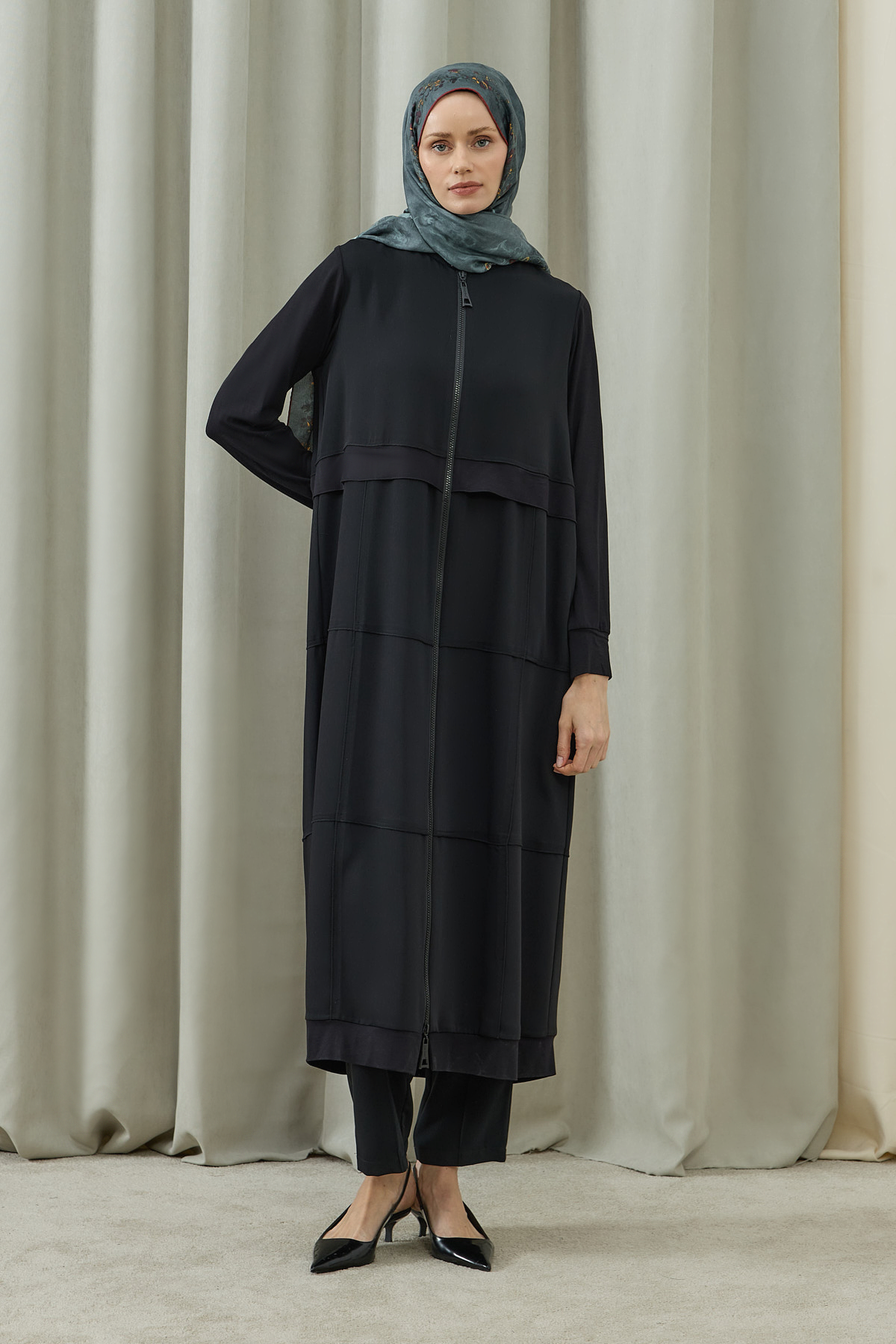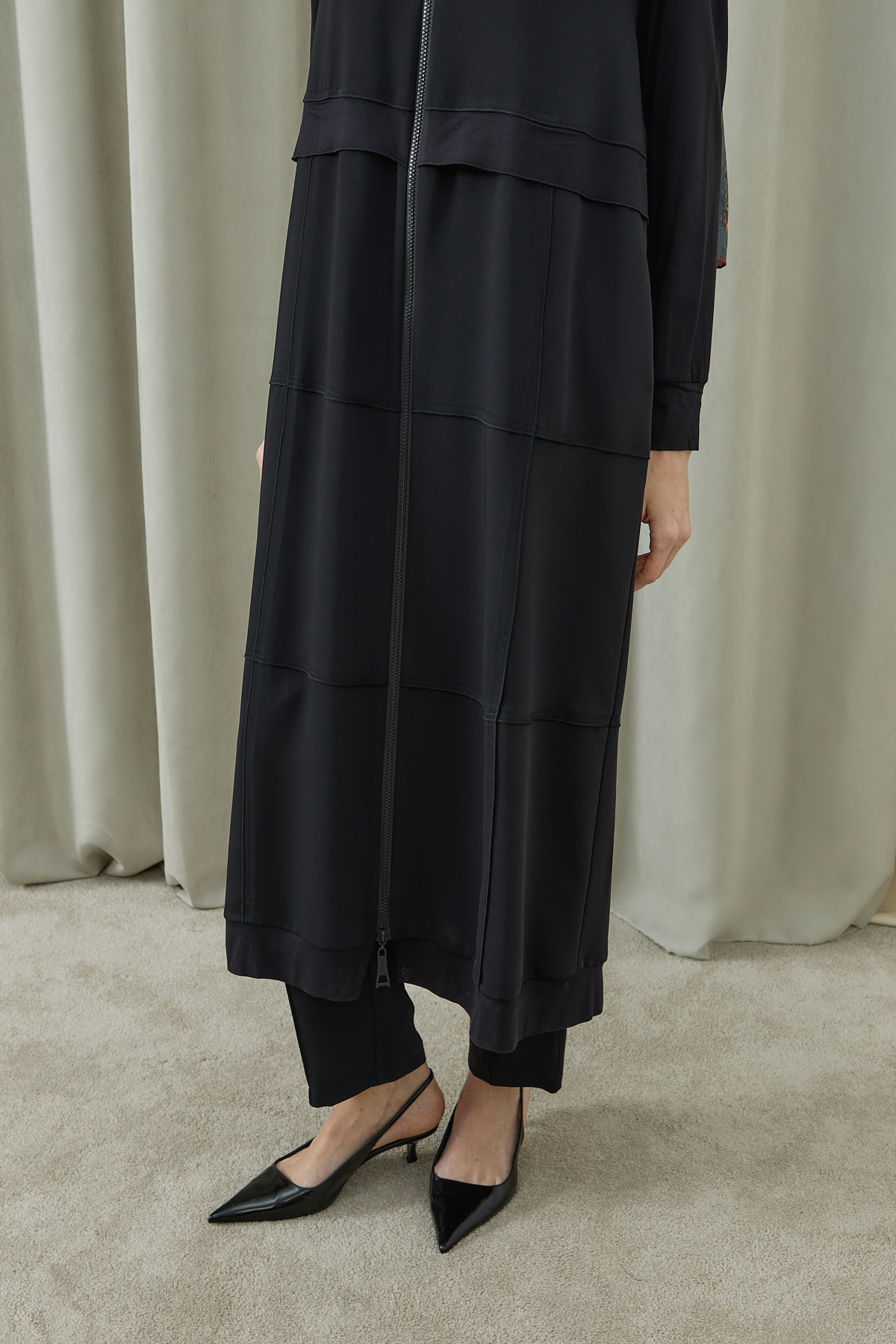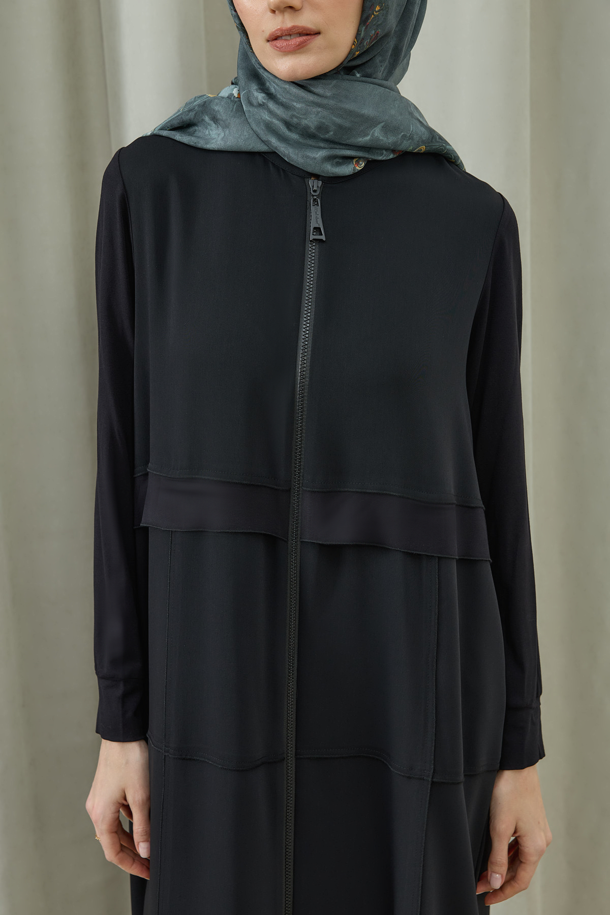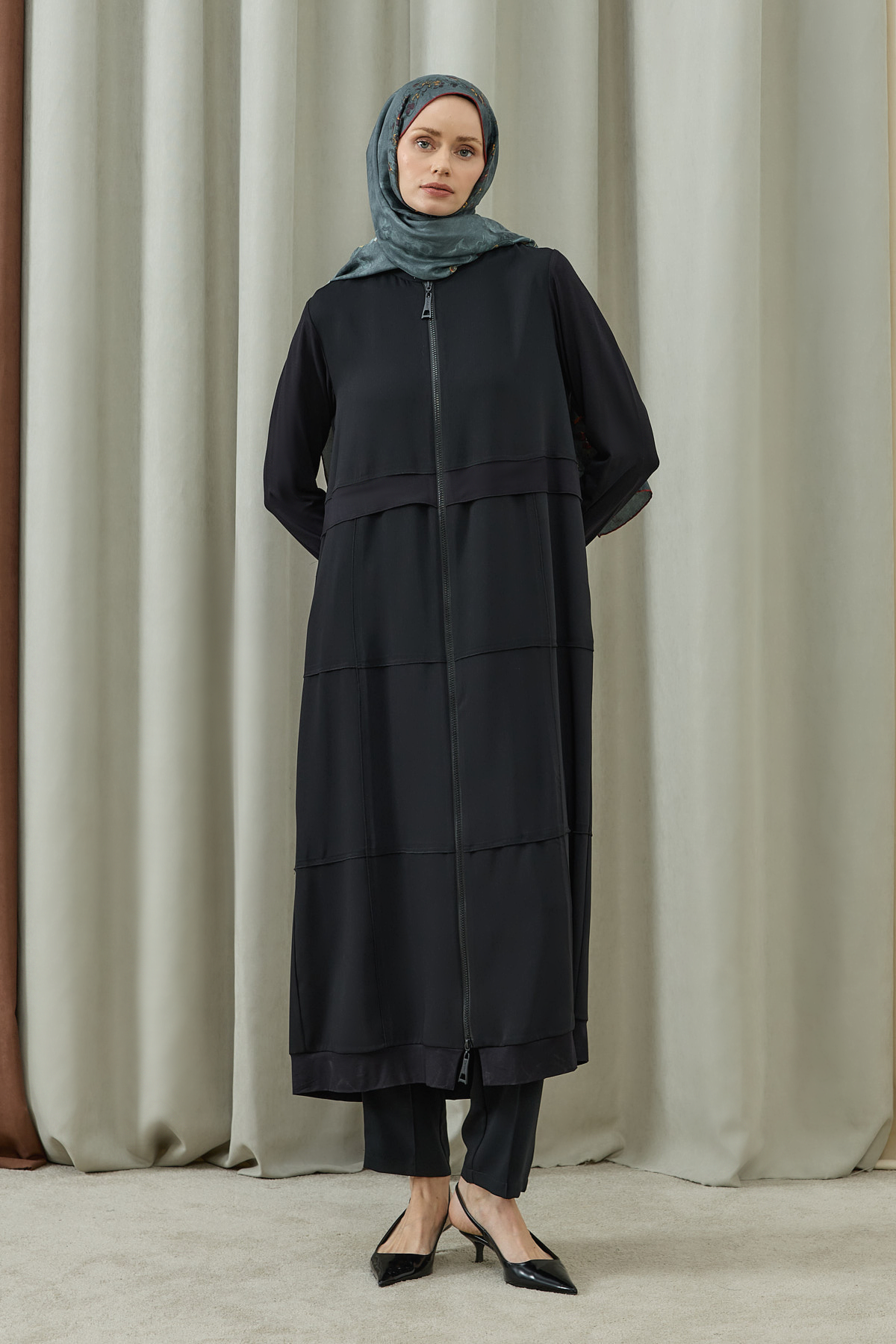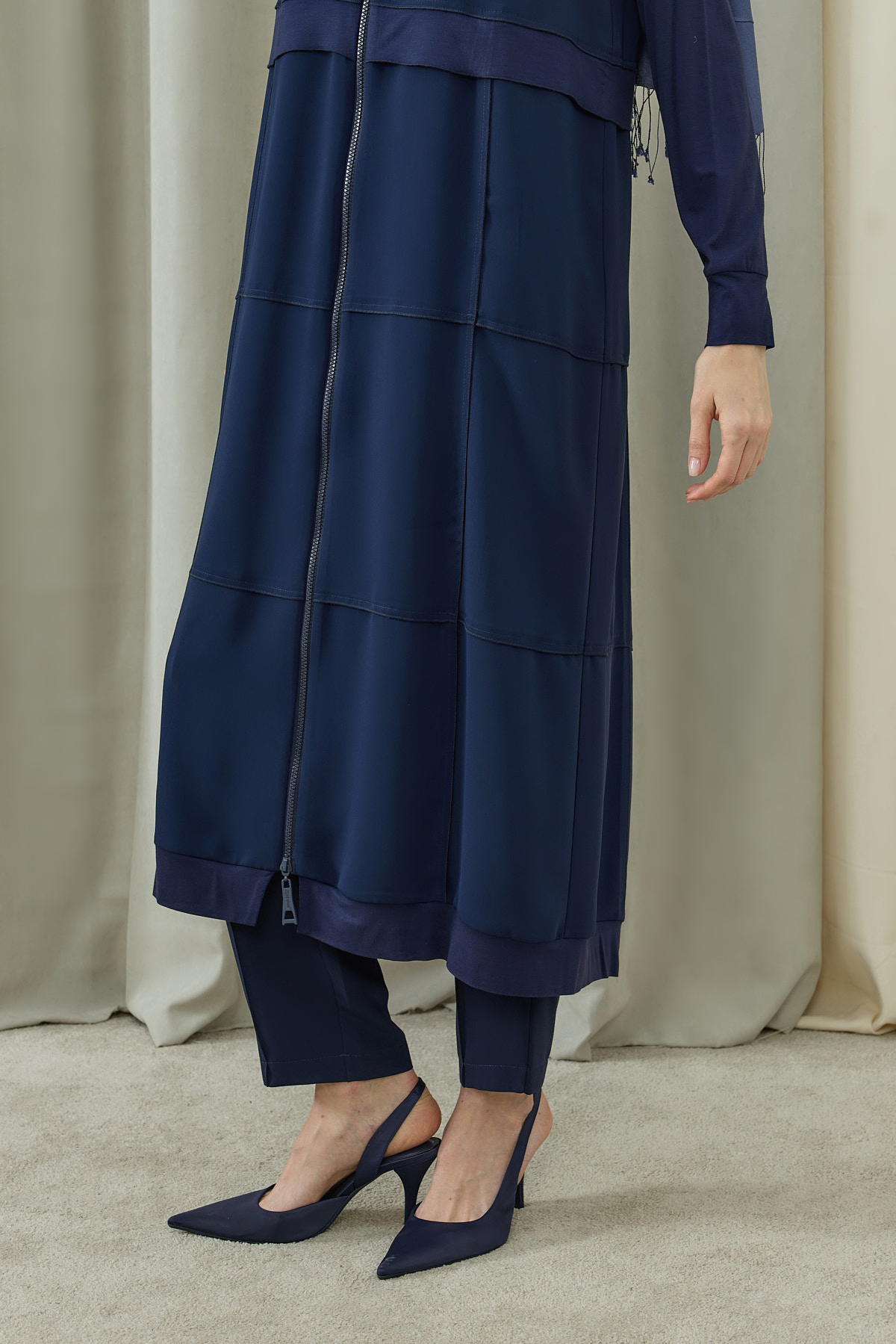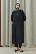 Fermuarlı Kat Kat Biye Detaylı Pardesü