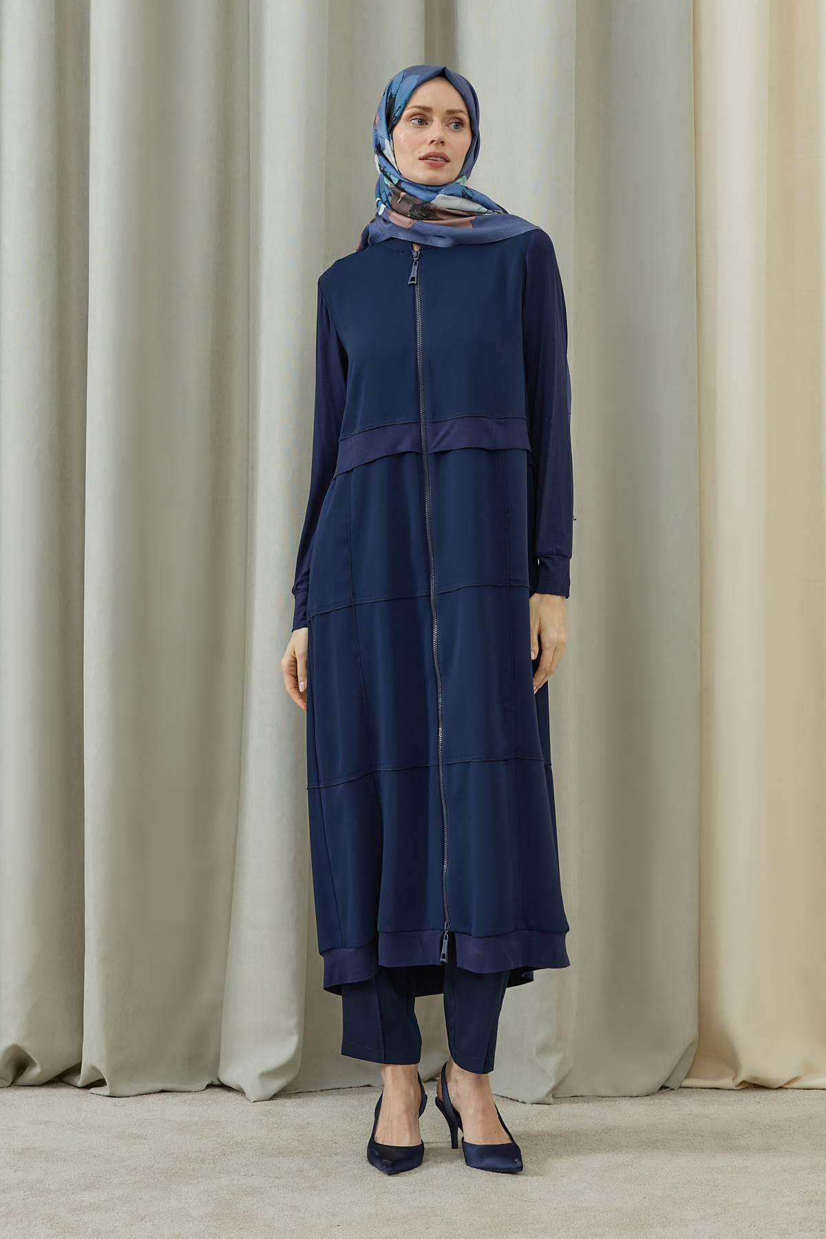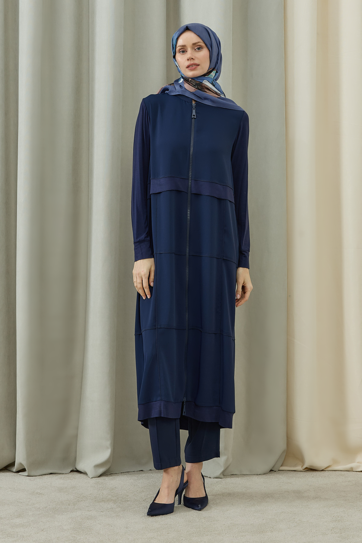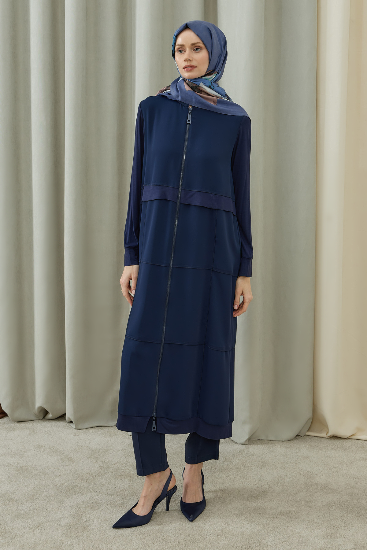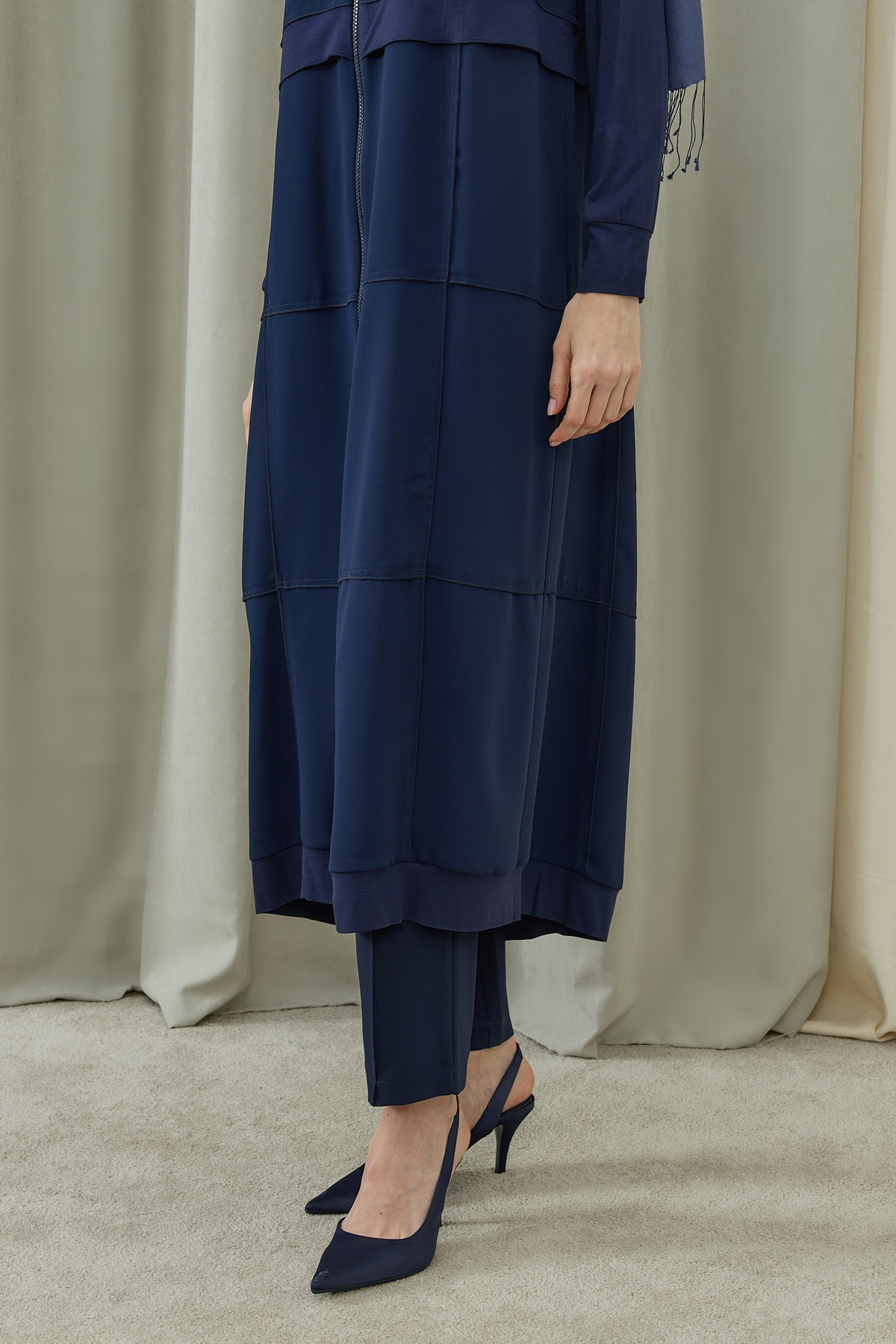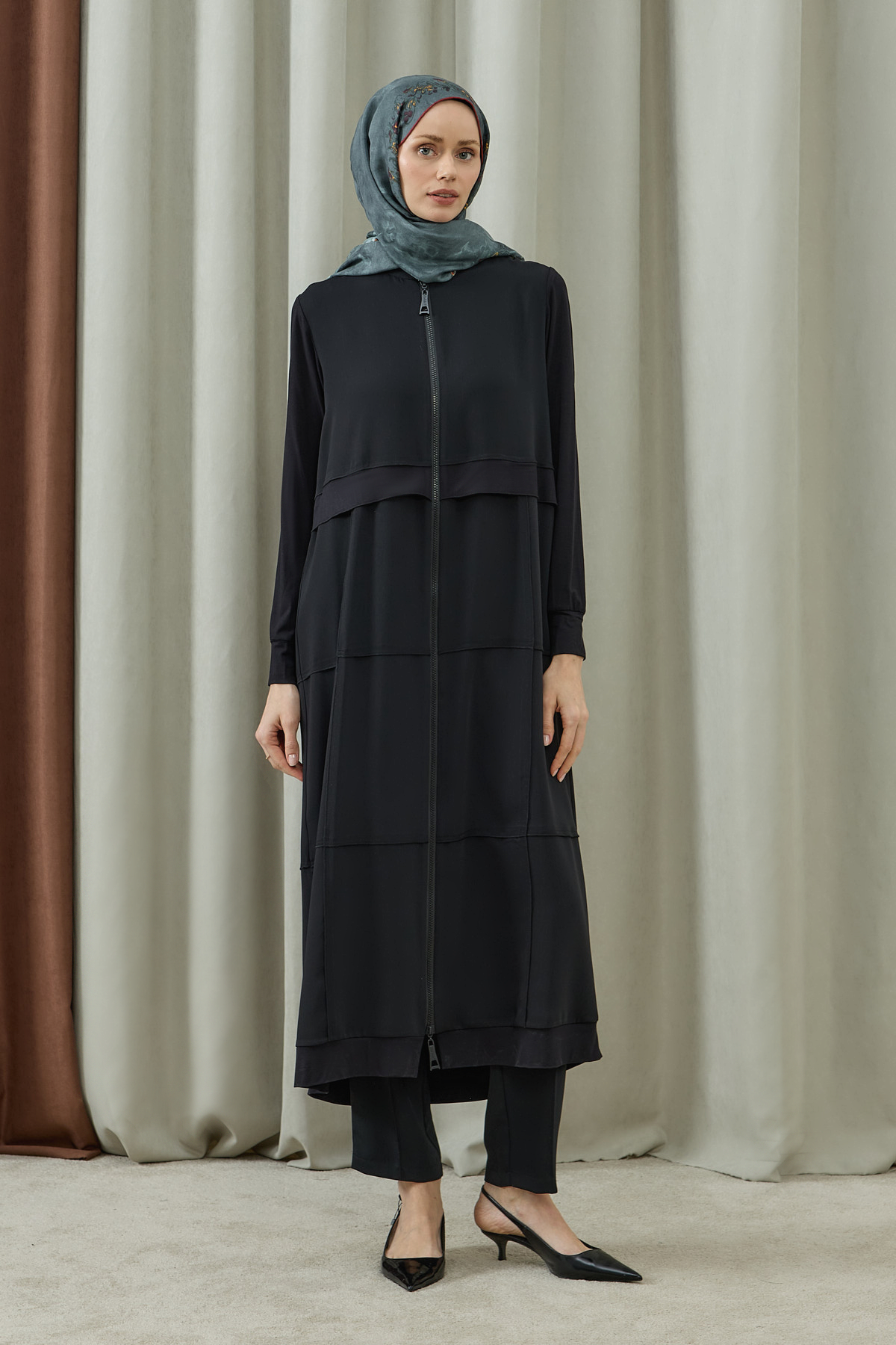 Fermuarlı Kat Kat Biye Detaylı Pardesü