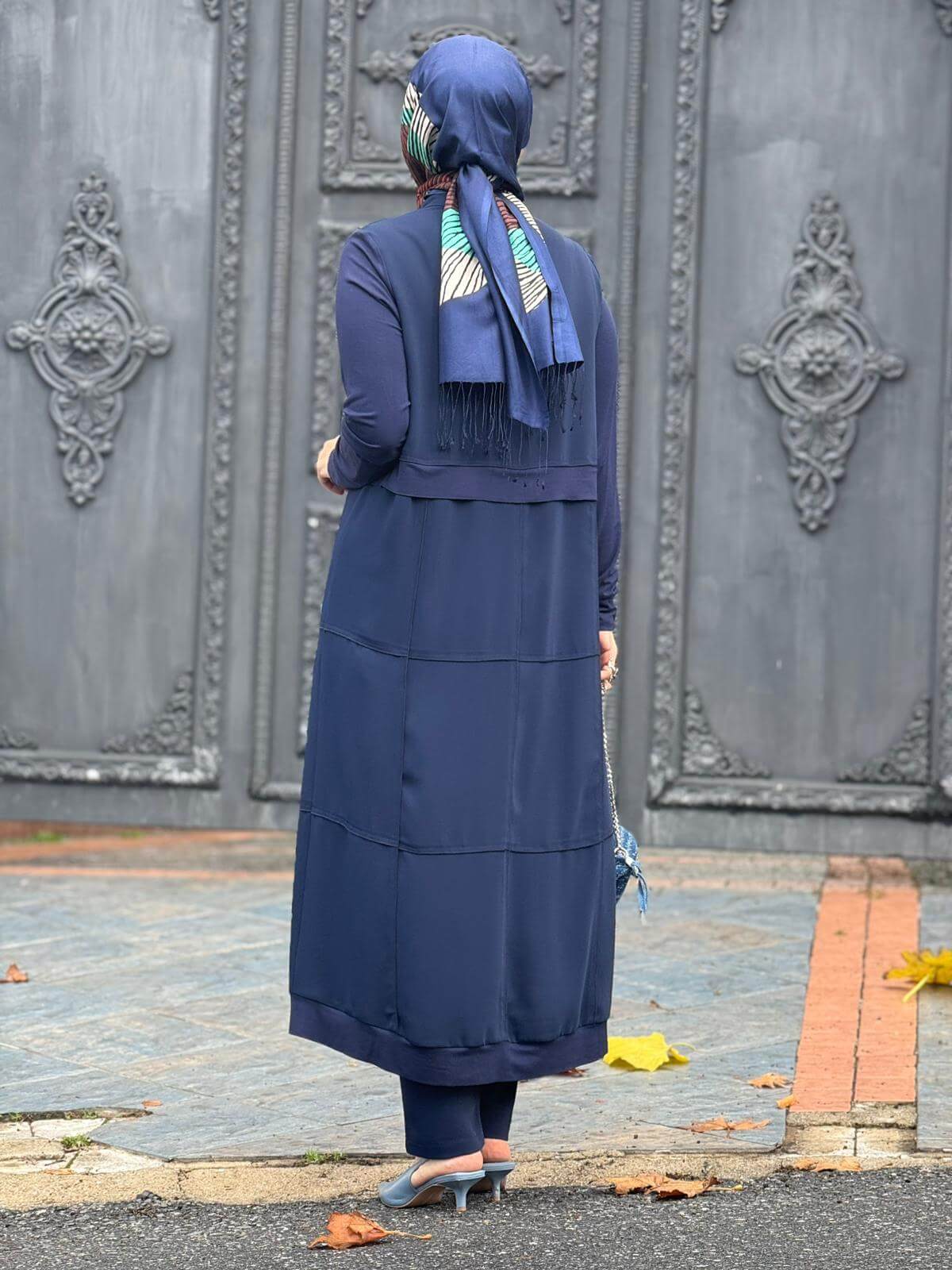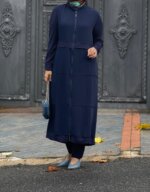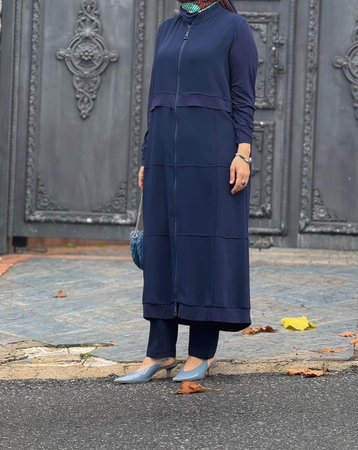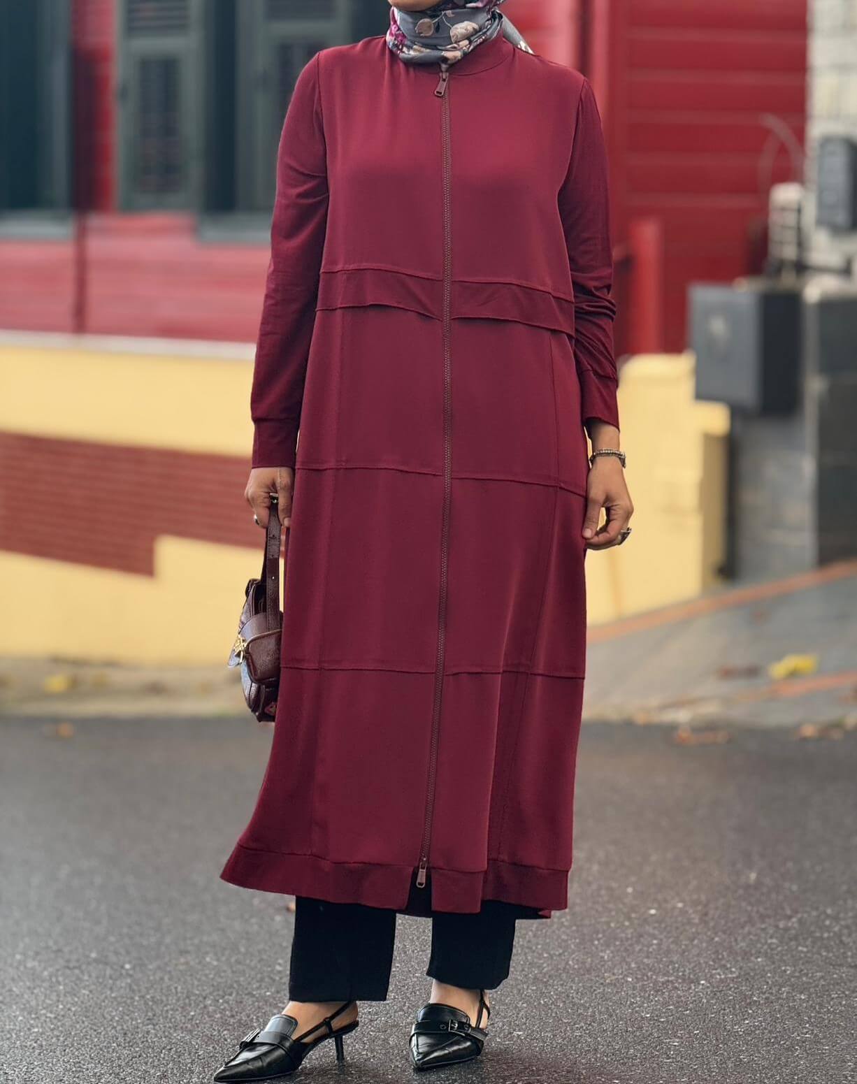 Fermuarlı Asimetrik Dikiş ve Cep Detaylı Ferace