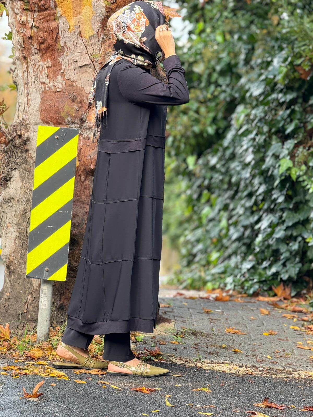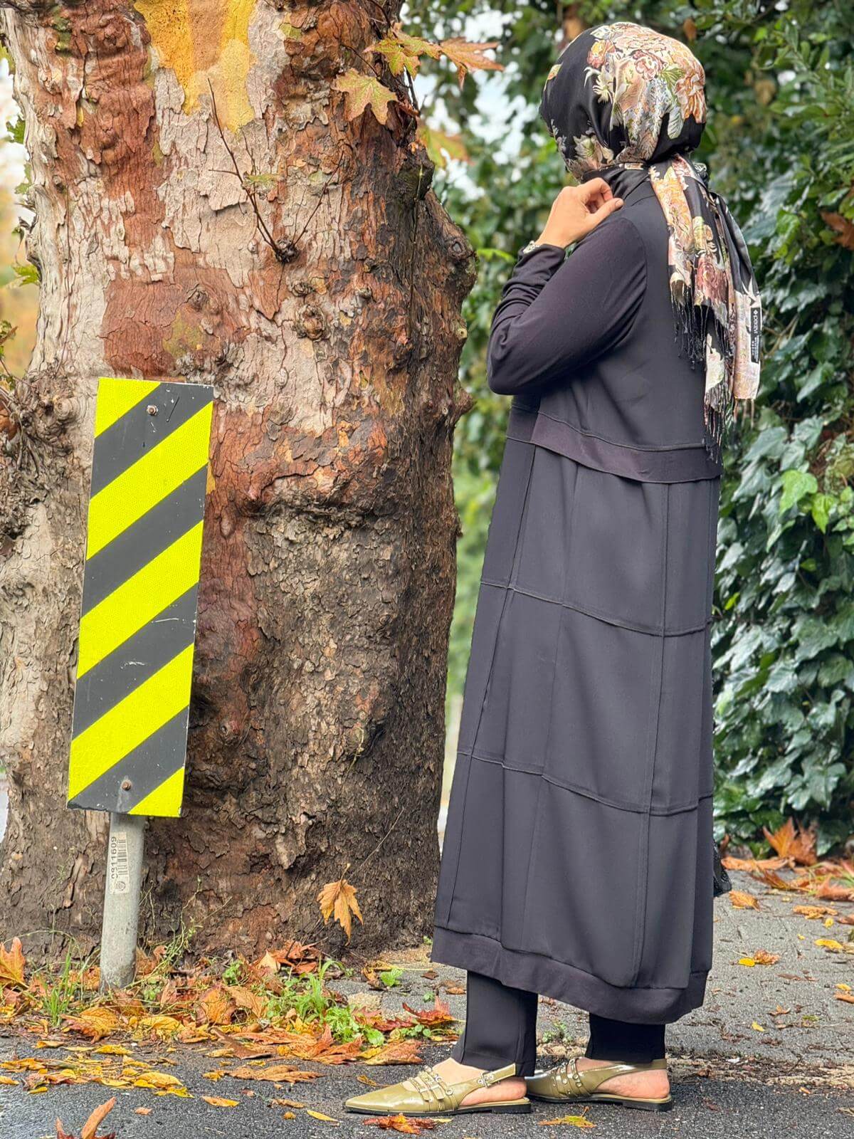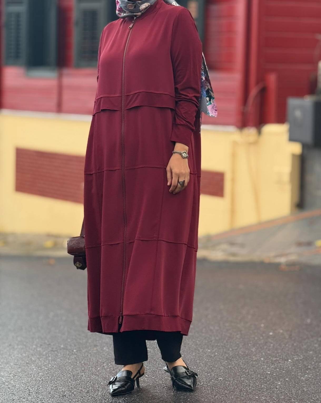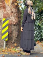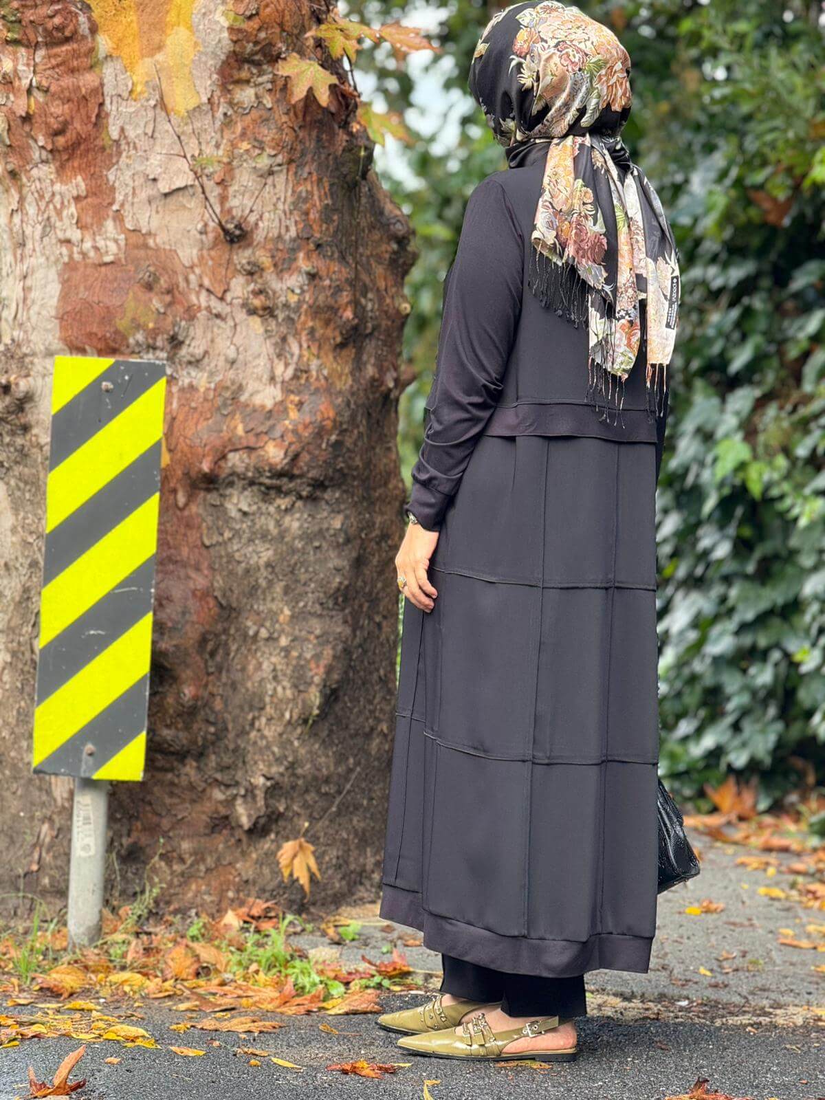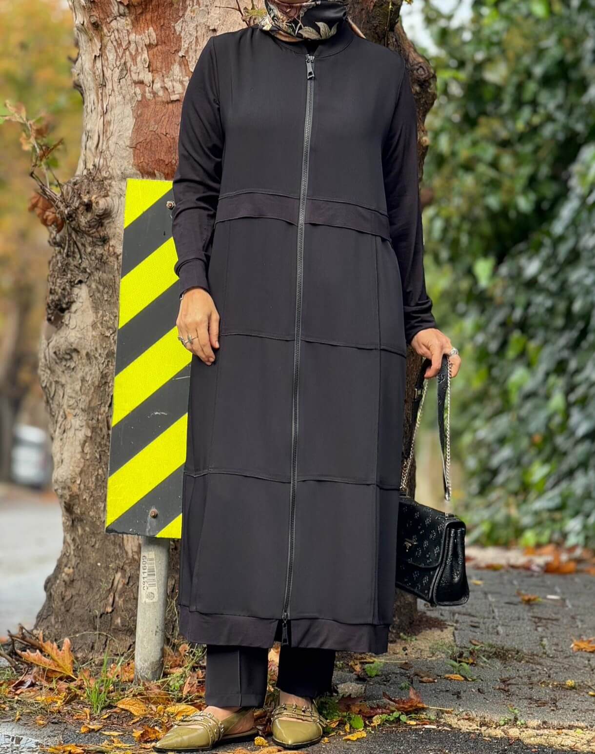 Ana Sayfa Ferace & Pardesü Fermuarlı Kat Kat Biye Detaylı Pardesü