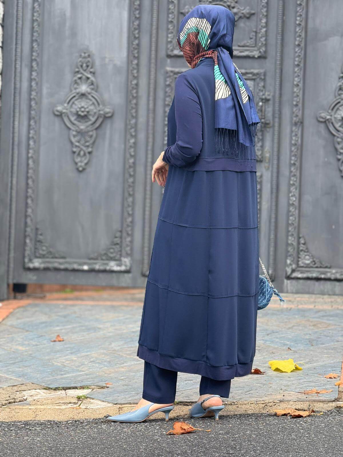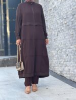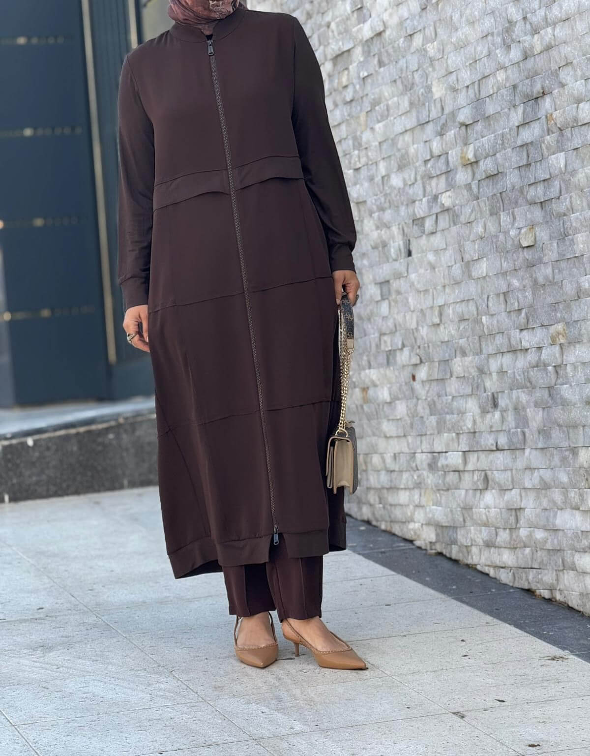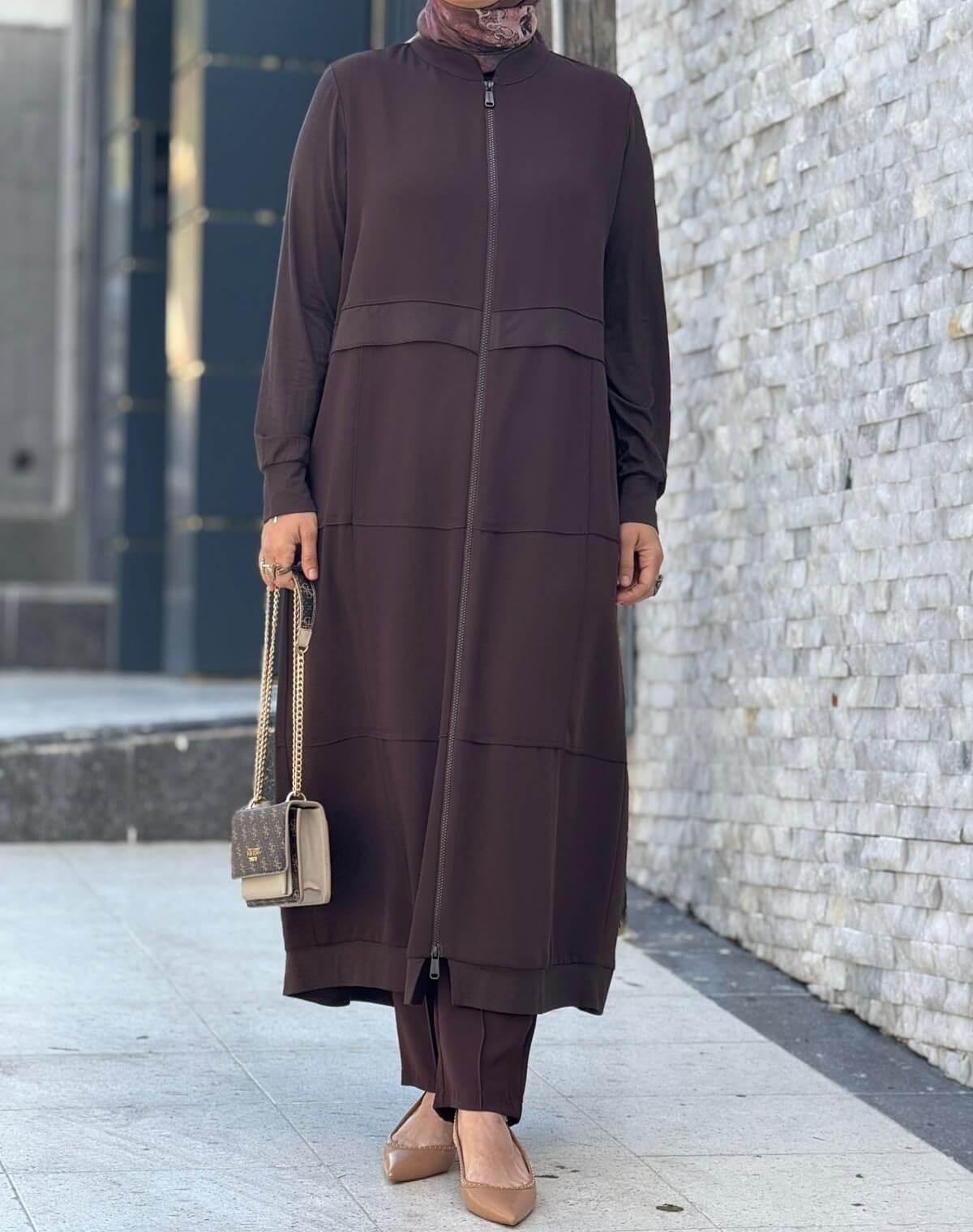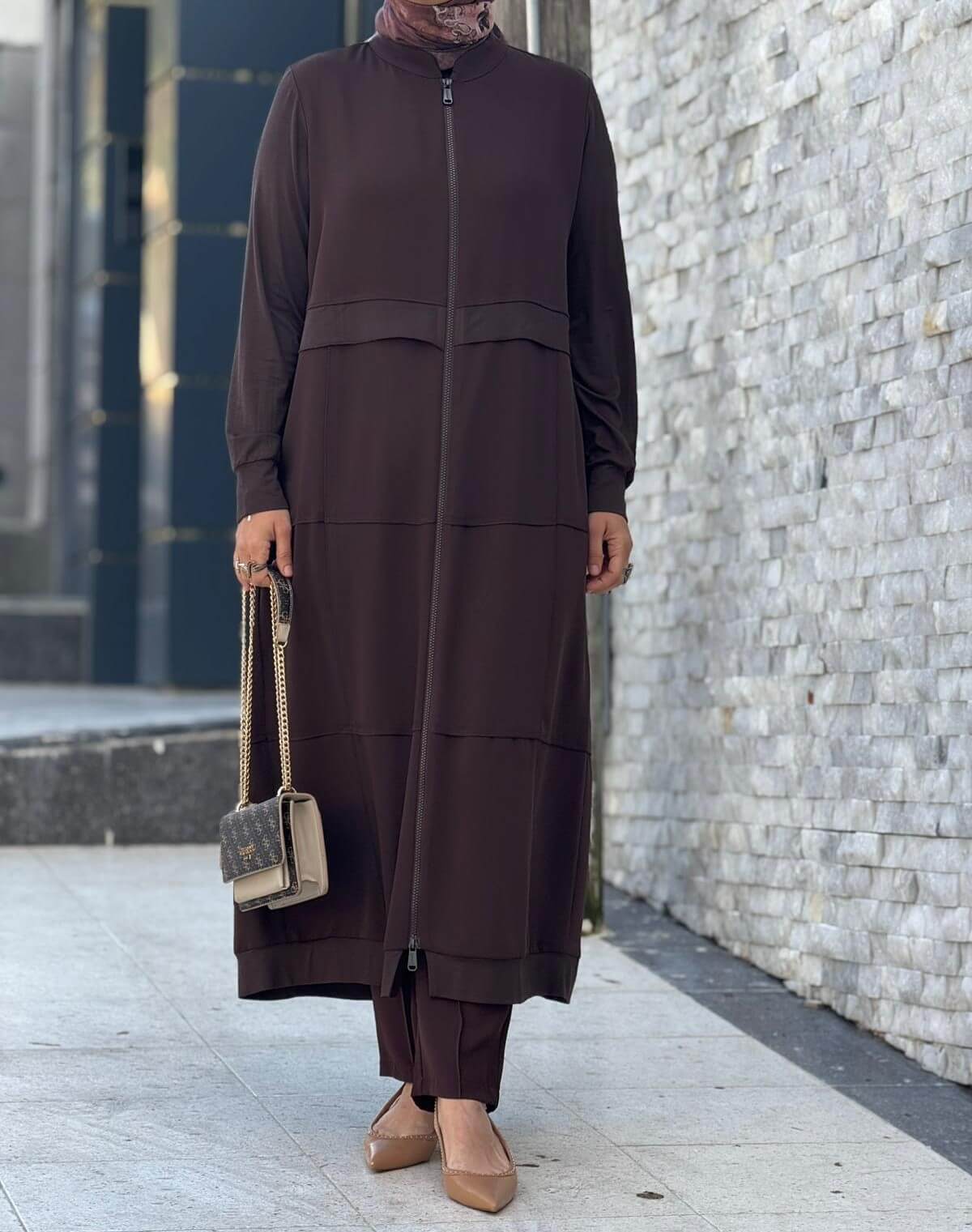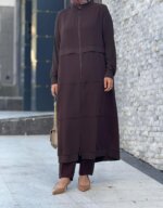 Ana Sayfa Ferace & Pardesü Fermuarlı Kat Kat Biye Detaylı Pardesü