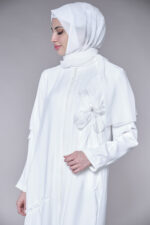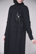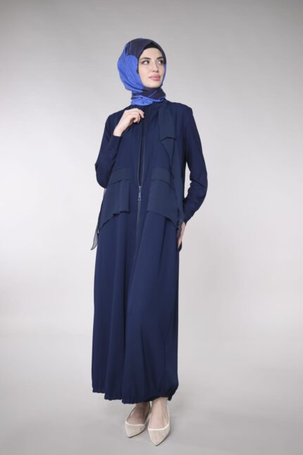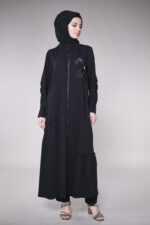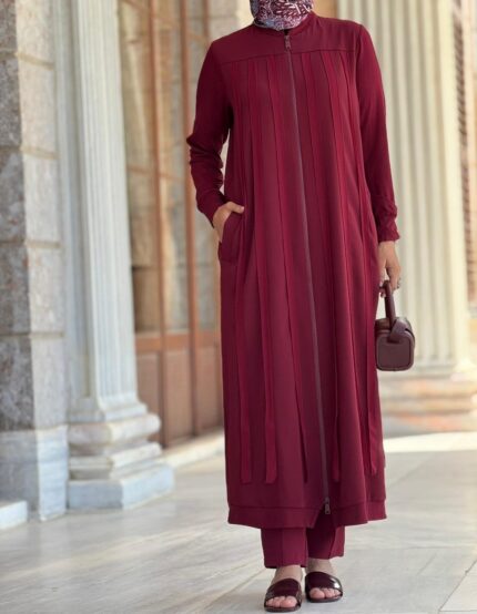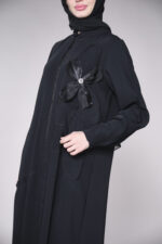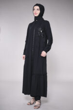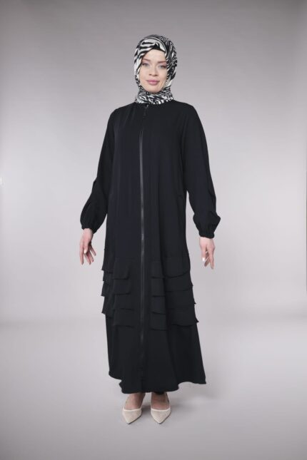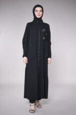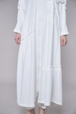 Fermuarlı Çiçek ve Fırfır Detaylı Uzun Pardesü