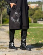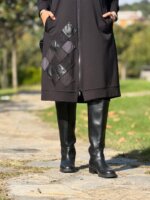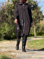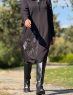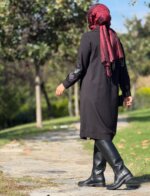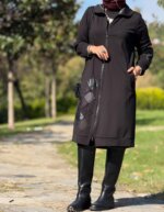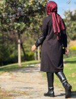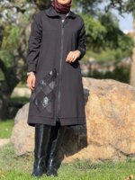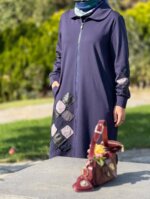 Fermuarlı Patchwork Deri Detaylı Tesettür Tunik