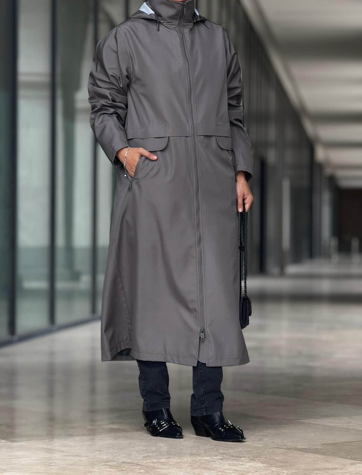 Kapüşonlu Önden Fermuarlı Pardesü