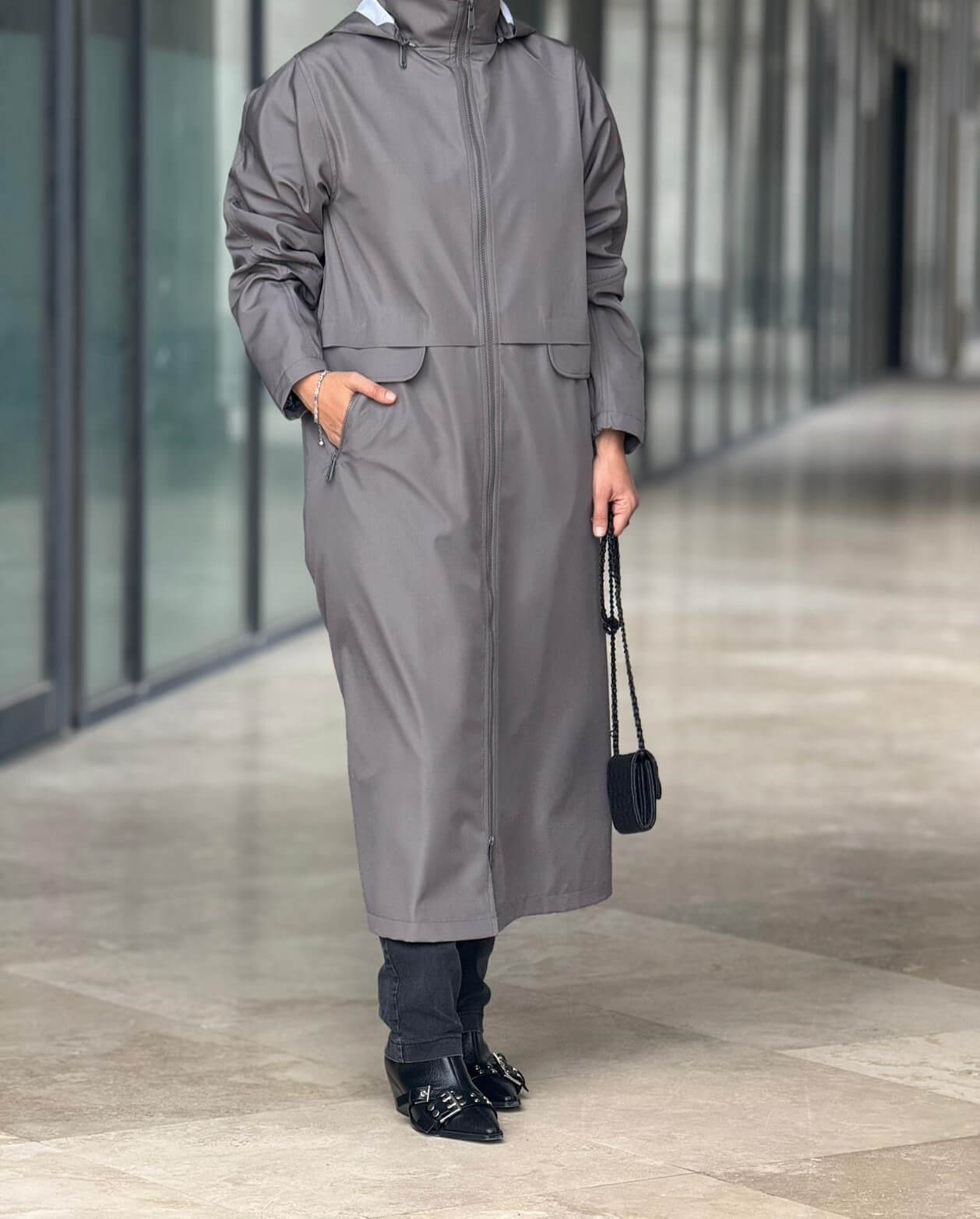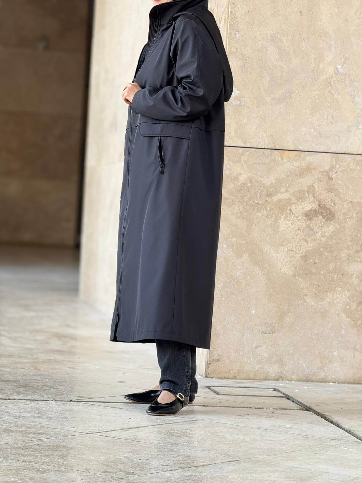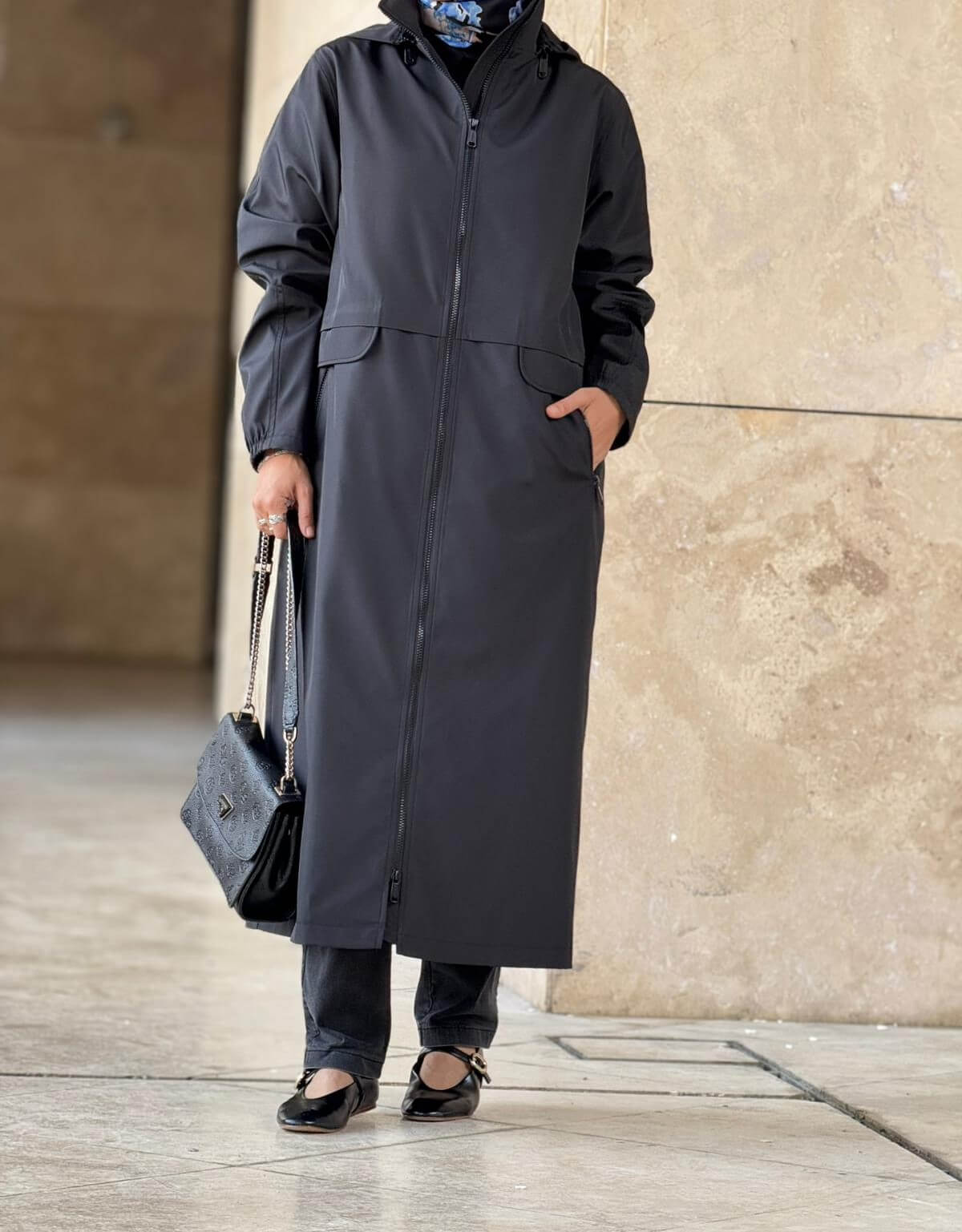 Fermuarlı Cep Detaylı Kışlık Tesettür Kap