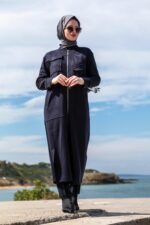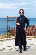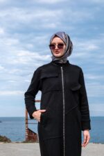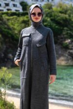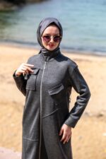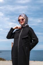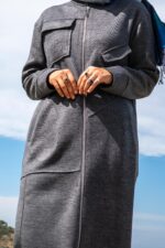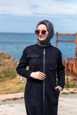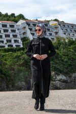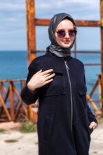 Önden Fermuarlı Şifon Detaylı Örme Tesettür tunik