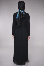 Fermuarlı Yakası Şifon Detaylı Uzun Pardesü