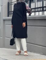 Yandan Fermuar Detaylı Tesettür Triko Tunik