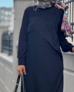 Çapraz Kat Kat Şifon Detaylı Tesettür Tunik
