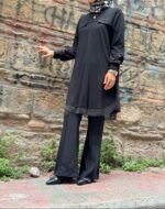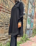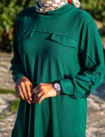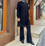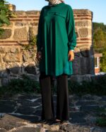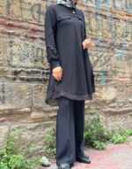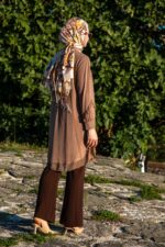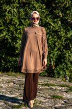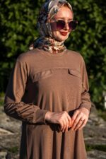 Cep Detaylı Şifon Şeritli Tesettür Tunik